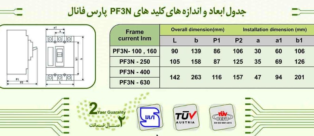 کلید اتوماتیک قابل تنظیم PF3N با ظرفیت قطع 50 برند پارس فانال