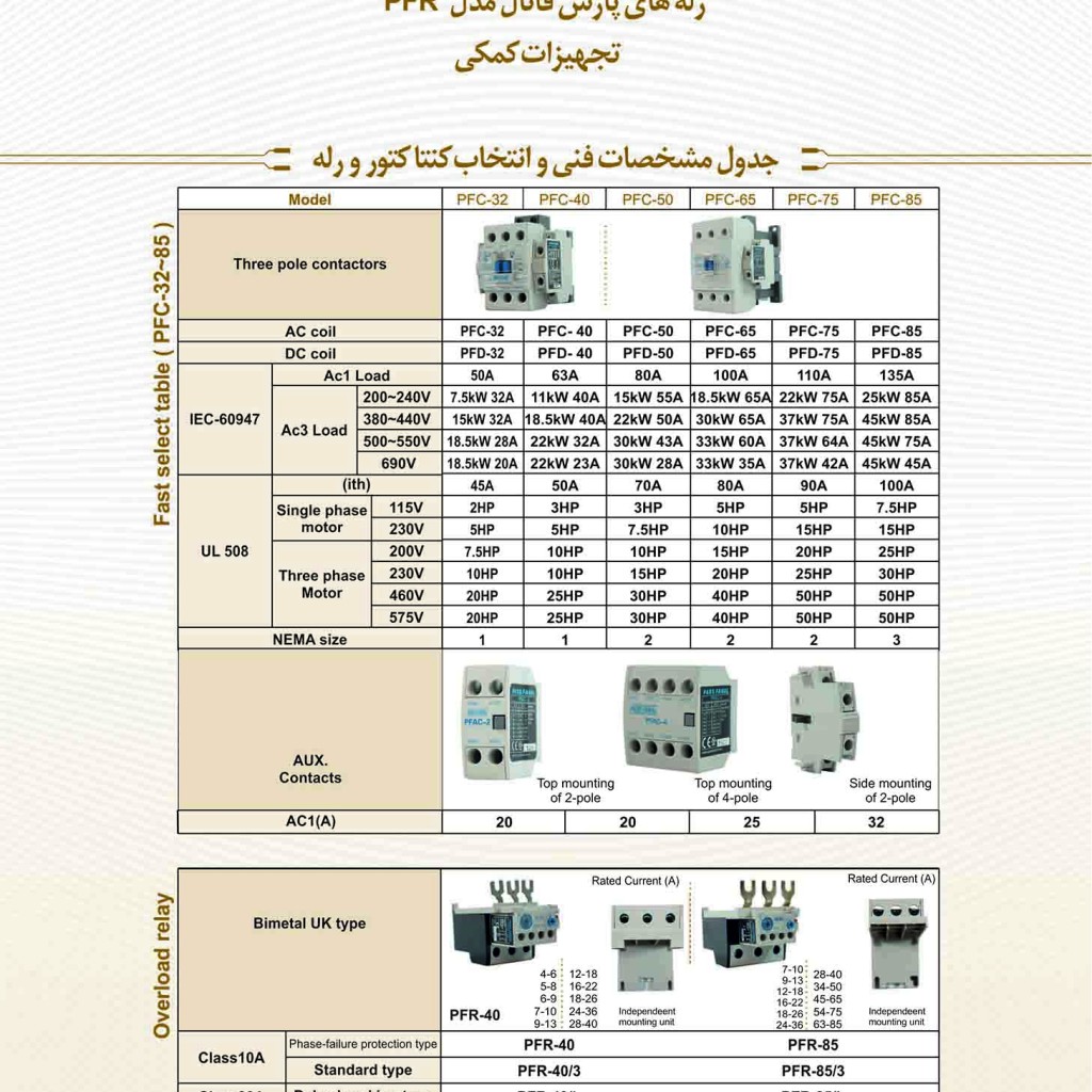کنتاکتور پارس فانال 85 آمپر 3 فاز مدل PFC-85 بوبین 220 ولت