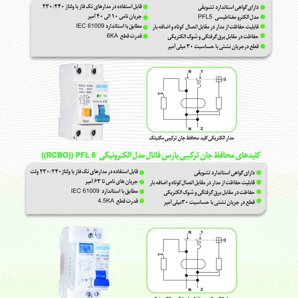 محافظ جان(ترکیبی) RCBO 32A دوپل پارس فانال